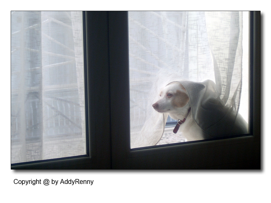 L-avrei vista meglio con un-inquadratura frontale della finestra che riempisse tutto il fotogramma e il cagnolino nell'angolo in basso a destra.