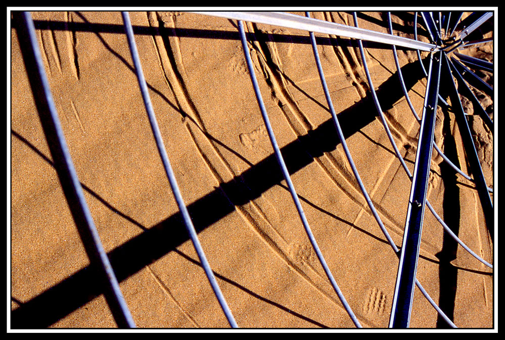 | un taglio così netto è un po' voluto ... magari un ombrellone sulla sabbia mi sembrava un po' noioso così ho scelto di fare questo taglio per dar modo a chi vede la foto di soffermarsi sulle forme, le linee ed i colori ... ed a suo desiderio di dare una interpretazione ... |
