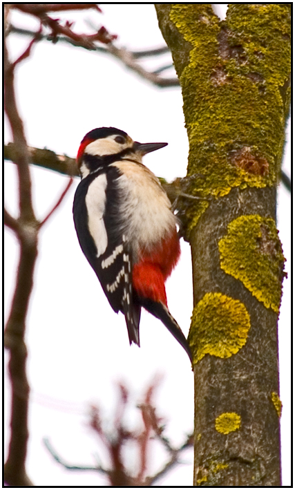 Stavo facendo un trattato sulla fisica quantistica quando mi sono accorto che fuori dalla finestra c'era questo picchio immobile, sarà rimasto fermo due minuti a fissare il tronco ... finito il trattato ho tirato l'acqua e sono andato a prendere l'armamentario e sono andato al piano superiore, quando sono arrivato si era spostato e ha continuato a risalire l'albero, ha dato due picchiettate e se ne è volato via. Comunque giorni fa ne ho avvistati due in contemporanea ma non avevo la possibiltà di inquadrarli entrambi ed erano un pò troppo lontani. Commentate pure, suggerite, modificate, insomma tutto quello che volete.