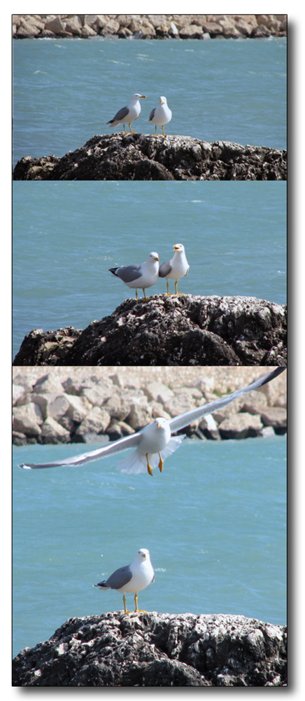 bella sequenza, mi piace. nella seconda foto in particolare i gabbiani sono molto espressivi e i bianchi sono a posto. La terza porta il neo dell'ala tagliata. Un buon lavoro  |