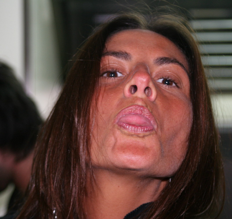 non è molto a fuoco e la donna è presa in una posa orribile; può essere conservato come ricordo personale di un momento scherzoso, ma non vedo molto senso nel mostrarla a un pubblico diverso dai familiari e dagli amici.