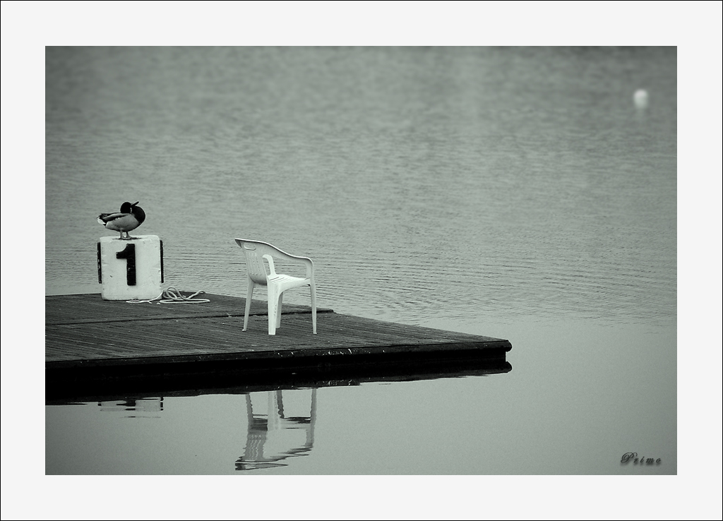 C'è un bel protagonista, un centro di initeresse (la sedia, che attira inevitabilmente lo sguardo) e la boa in alto a sinistra a spezzare la monotonia del mare....