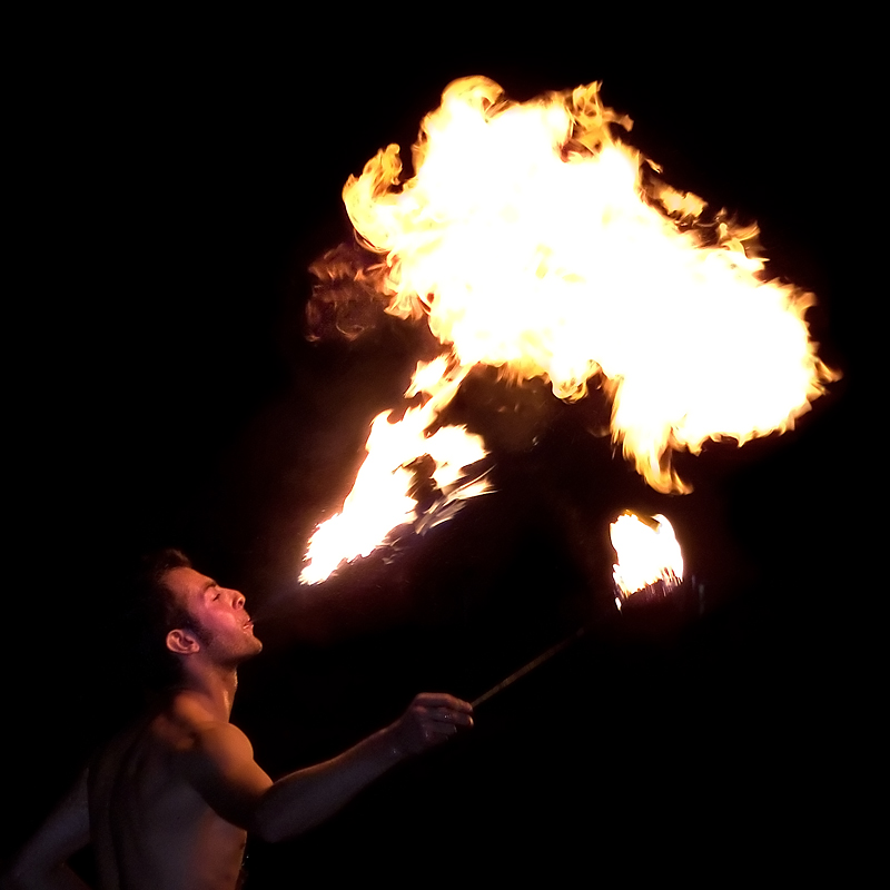I tempi ed il diaframma sono 1/160 sec - F/3,2 - 400 ISO. L'esposizione è stata calcolata sull'uomo e la fiammata è stata... bruciata!