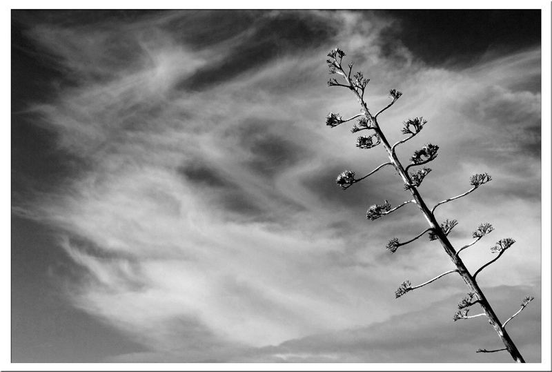 Ringrazio veramente tutti per i commenti che ho ricevuto. In effetti l'originale in raw ha l'agave sulla sx.Per le giuste osservazioni fatte avrebbe dovuto restare li. Però facendo lo stesso ragionamento l'ho specchiata, cioè ho pensato che lo sguardo per primo avrebbe dovuto soffermarsi sul cielo e poi.. fermarsi sulla pianta. Concordo, a sx esteticamente è però più "bella"