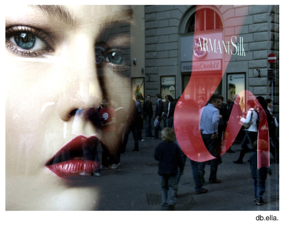 Lei sembra viva e bloccata in un pensiero; in netto contrasto con il movimento concitato di chi sta oltre il suo confine. mi piacciono molto la tonalità delle sue labbra e dei suoi occhi.
