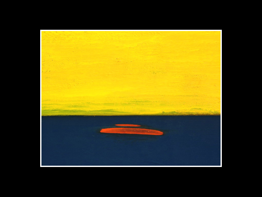 Vi dico cos'è...... un piccolo sbaffo di vernice rossa sulla fiancata di una barca di legno ferma sulla spiaggia, il blu è la parte della chiglia, il giallo la parte sopra.