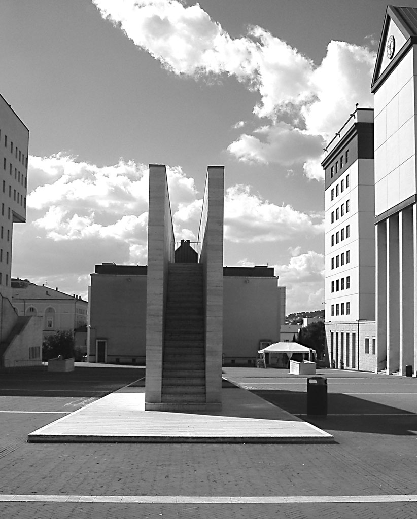 Strane forme, architettura quasi finta. Sembra di osservare una macro di un plastico di una "città ideale". La completa assenza di persone enfatizza questa componente estemporanea dello scatto.