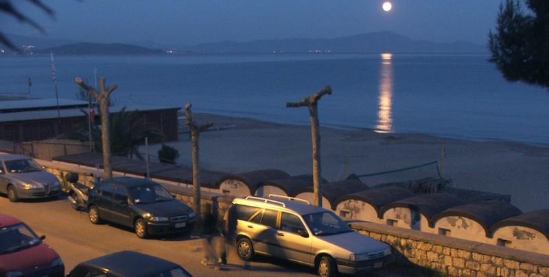 Bella la luna ed il suo riflesso sul mare, belli anche i colori.