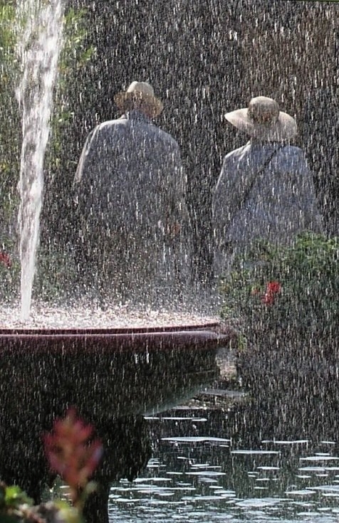 Brava, è molto bello come le gocce creino una trama, quasi una nebbia, dalla quale le due figure emergono assumendo quasi un alone di mistero.