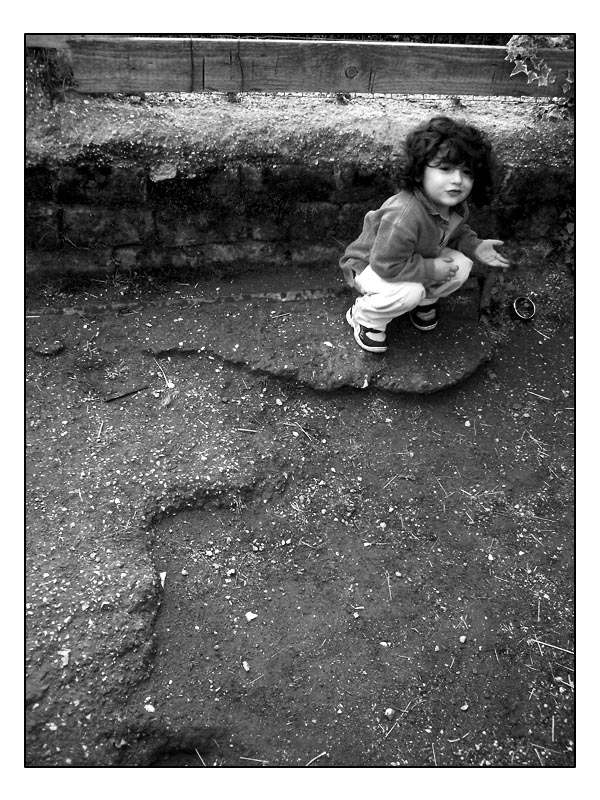 L'atteggiamento della bimba è simpatico, e anche la scelta di lasciare il terreno vuoto mi piace: da il senso dello spazio che la bimba potrebbe usare per giocare