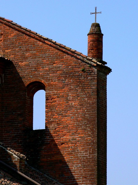 Presa singolarmente è un'immagine, a mio avviso, incapace di comunicare la struttura o bell'ezza dell'edificio. Magari con un taglio più 'astratto' (passami il termine) potrebbe acquisire più interesse. Proverei a tagliare il pezzo di tetto sotto e a sinistra.