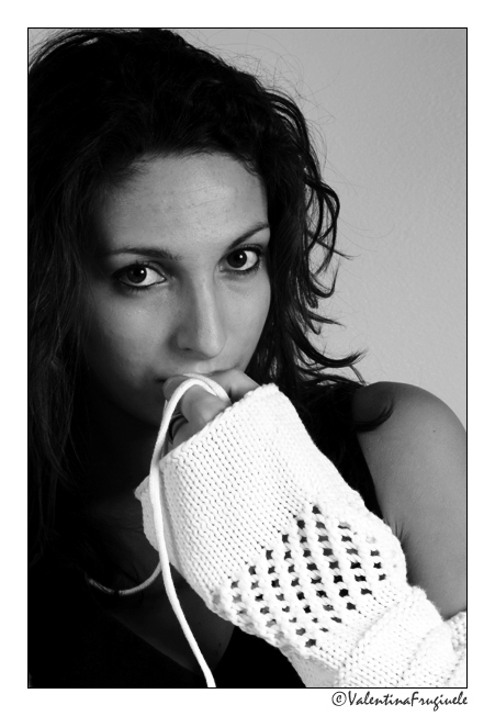 sguardo intenso, gesto della mano molto tenero....ma non mi convince a fondo tutta questa presenza bianca in primo piano che mi distrae un pò troppo dallo sguardo! Wink La manica così a coprire la mano, quasi totalmente, contribuisce al senso di timidezza! Scatto non male Ok!