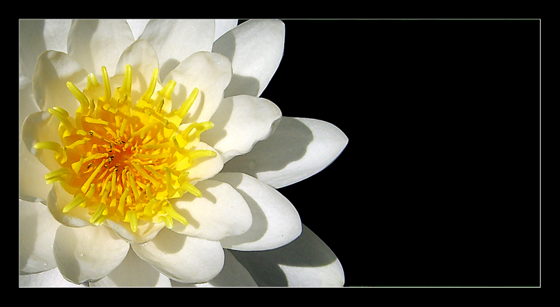 bel taglio. il giallo, il bianco, il nero, bel cromatismo. una sola nota: l'ombra dei petali che si riflette. Ok!