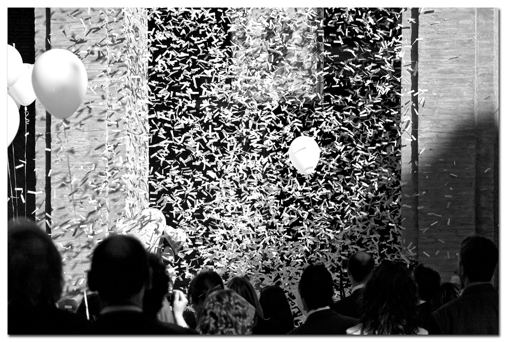Dal matrimonio di amici, una foto di giubilo in bianco e nero assoluto. _________________ [...] In una notte di luna Chiyono stava portando acqua in un vecchio secchio di legno fasciato di bambù. Il bambù si ruppe ed il fondo del secchio cadde. In quel momento Chiyono fu liberata; disse: "Non più acqua nel secchio, non più luna nell'acqua". Ovvero: l'Arte di mangiare pane e sottilette per 120 giorni, comprare una 350D**BG-E3**Σ APO 70-300 Macro**Tamron 17-50 2.8**5D Mark II**17-40 f4 L**Metz 58, pagare cash e non battere ciglio. |