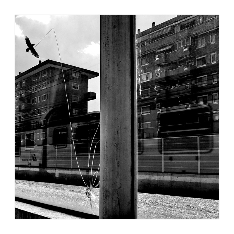 grande scatto...b/n contrasto al punto giusto e la spaccatura del vetro che ci conduce direttamente al volatile...fortunato, ma la fortuna aiuta gli audaci! Very Happy