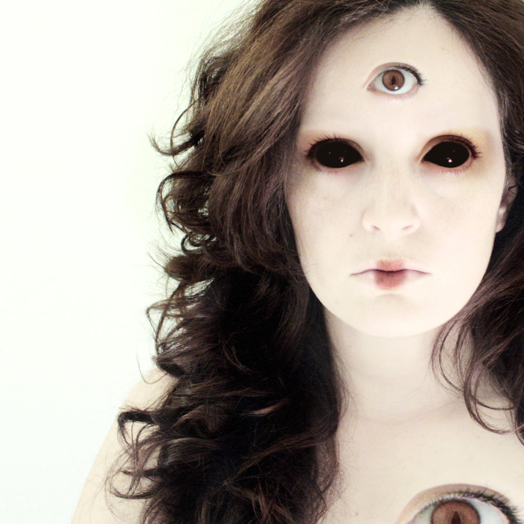 Per essere un simbolismo efficace, poi, sarebbe auspicabile che l'occhio sulla fronte non sia ne' sinistro ne' destro: l'occhio che vede tutto (così si chiama il terzo occhio) deve essere sovrumano e non umano. Non so come... magari prendendo mezz'occhio e ribaltandolo per fare sparire la ghiandola lacrimale che individua la direzione del naso.