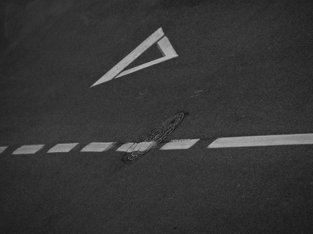 gretto l'asfalto con il contraltare della bianca vernice schiava delle linee che vuole contenere.. bella metafora delle contraddizioni della società...