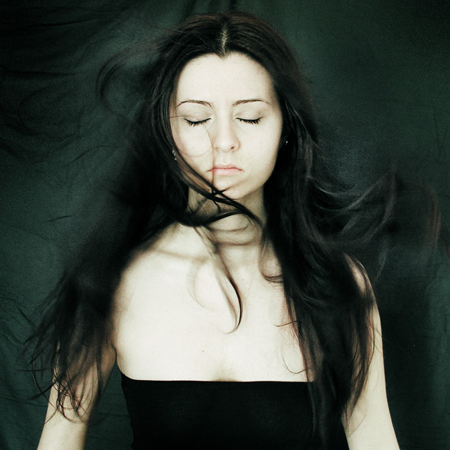 le elaborazioni che ho eseguito sulla foto sono, oltre ai toni e i contrasti, l'aggiunta di un effetto bordo/vignetattura (se mi posso permettere il termine) e un lavorio di schiaritura su alcune ciocche di capelli e zone troppo ombrose...cosicchè la figura in se per se da un'idea di piatto e credo dia più intensità al movimento dei capelli. Un movimento frivolo che guida alla ricerca di un punto fermo, a fuoco: uno sguardo che è ovunque e da nessuna parte...