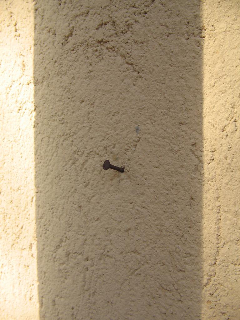 BRAVISSIMO!!!ottima l'ombra che risalta rispetto al muro soleggiato!e il chiodo è perfettamente a fuoco!!ma dimmi la verità...stai facendo un corso di fotografia?? Ok! Ok! Ok!