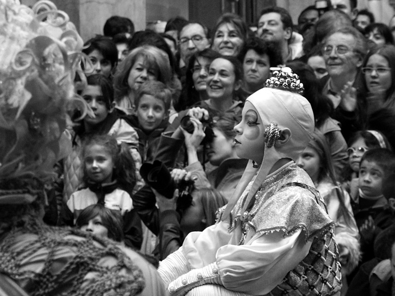 In merito allo scatto posso dirti che mi sarebbe piaciuto a colori. Perchè questo bimbo così truccato trova nei colori la sua forza. ma a colori avrebbe disturabato la folla dietro. La sagoma di spalle a sinistra non mi piace è un'intrusione forte che non serve alla scena. Tagliandone via una buona parte il piccolo budda sarebbe stato più protagonista dello scatto!