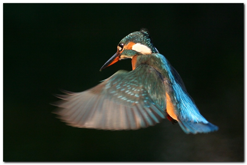 Bello anche lo sfondo che ha proposto Gianluca, ma personalmente lo preferisco sul nero..(questione di gusti).Il movimento mosso delle ali rende dinamico lo scatto e lo fa apparire ancora più affascinante, mentre la posizione da visione sulla parte iridescente e più bella di martino..
