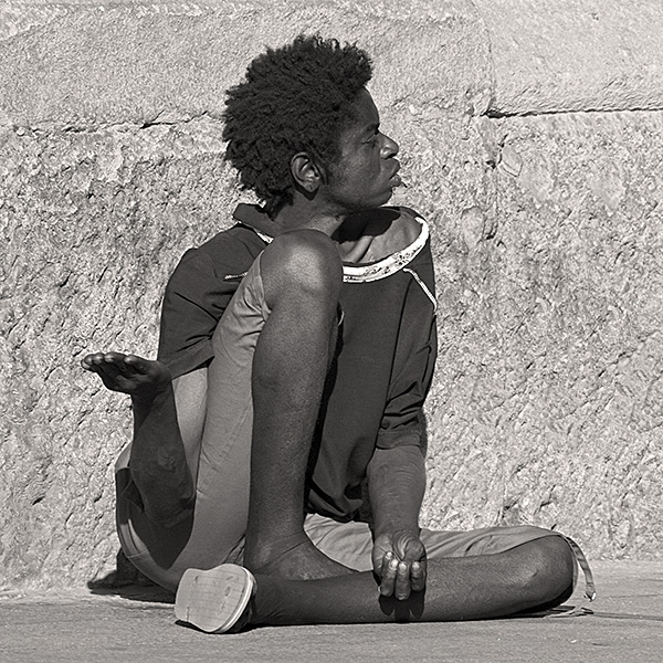 Mano in avanti , sguardo a sinistra, hai colto davvero un momento particolare, l'abitudine di questo ragazzo a chiedere l'elemosina sta tutto nella mano non tanto perche' protesa in avanti nel classico gesto, quanto alla contrapposizione della testa che e' distratta da cio' che accade intorno, e la mano invece resta la', ferma, immobile, probabilmente per tutto il giorno rimarra' cosi'.