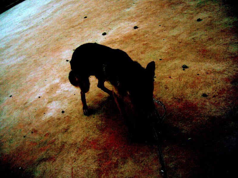 Manca la faccia del cane che così non libera l'espressività della foto. Dovevi sovraesporre un pochino o avresti dovuto staccare il cane dallo sfondo e schiarire i toni bassi in PW. Sullo sfondo avresti dovuto esasperare meno i colori, specialmente il rosso.