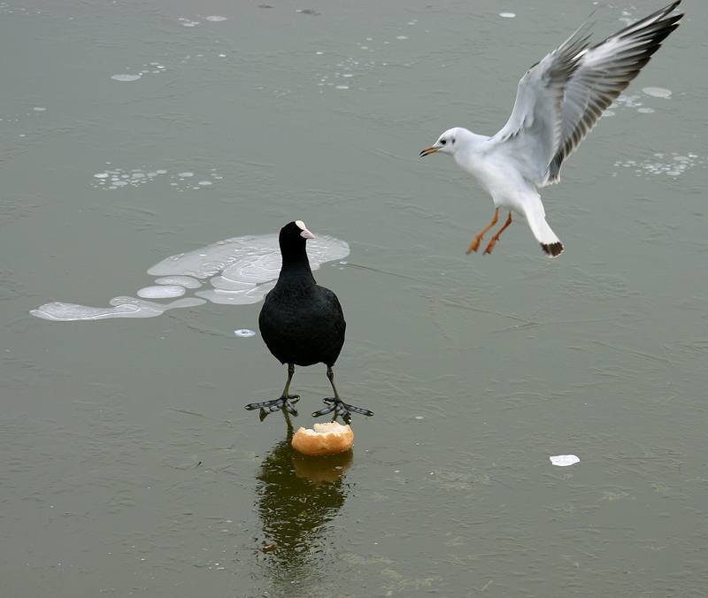 ecco che un giovane gabbiano attirato dal panino arriva in picchiata, lasciando di stucco la povera folaga che già pregustava il panino _________________ non hai ancora letto i miei 2 "foto-fumetti"naturalistici? allora divertiti con: