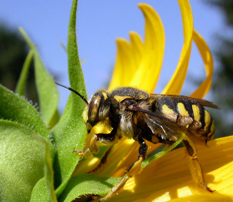 Un appunto, non è un'ape del miele e quindi non cerca il nettare, ma solo il pranzo e un braccio teso da pungere.