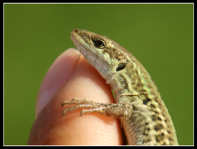 Sono riuscito a prenderla con delicatezza mentre tentava di sgattaiolare nell'erba fitta.
