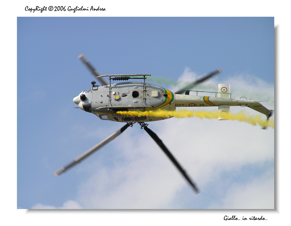 Bella foto oltre a quanto detto sul rotore di coda, aggiungo che un riferimento rispetto al suolo avrebbe reso, secondo me, la manovra più spettacolare.