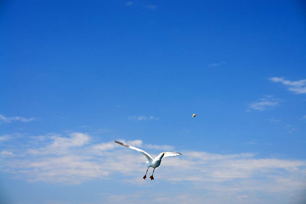 Tornando dalla Sardegna, sul traghetto un signore lanciava delle molliche di pane ai volatili...