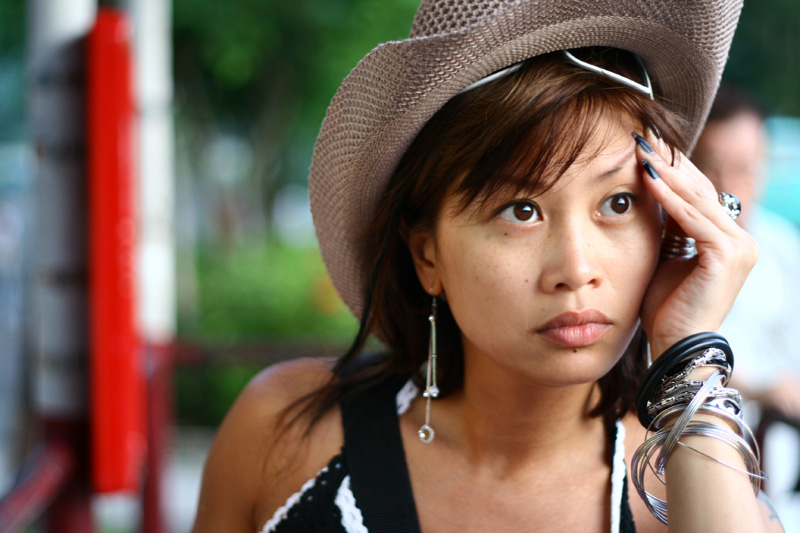 non sempre gli elementi di sfondo disturbano, a volte sono parte fondamentale di un`immagine.. qui sono i colori e il contesto della foto che mi piacciono particolarmente: il verde, il signore in secondo piano, i 3mila bracciali e le barre rosse che delimitano la zona bus) se era solo lei su fondo pulito.. non sarebbe stato lo stesso