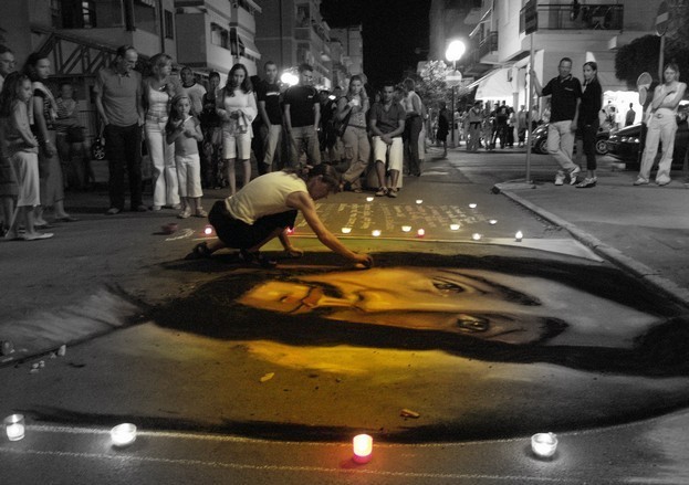 | bella ma avrei lasciato a coliri solo il dipinto a terra e non chi lo dipinge.... |