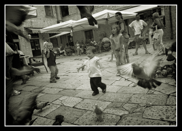 Ottimo tempismo, sei riuscito ad inquadrare bene cogliendo perfettamente l'azione e la gestualità. Anche il piccione ha contribuito, è in posizione perfetta.