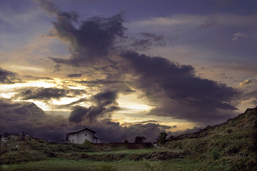 Un cielo di grande effetto. Si vede un alone bianco intorno alla casa e sugli alberi che si stagliano sull'orizzonte dovuto forse alla postproduzione.