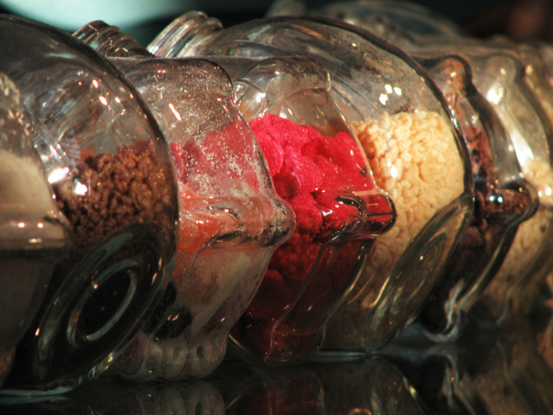 forse tutti quei riflessi dei contenitori disturbano un po'... e di conseguenza il contenuto non risulta ben nitido e a fuoco...