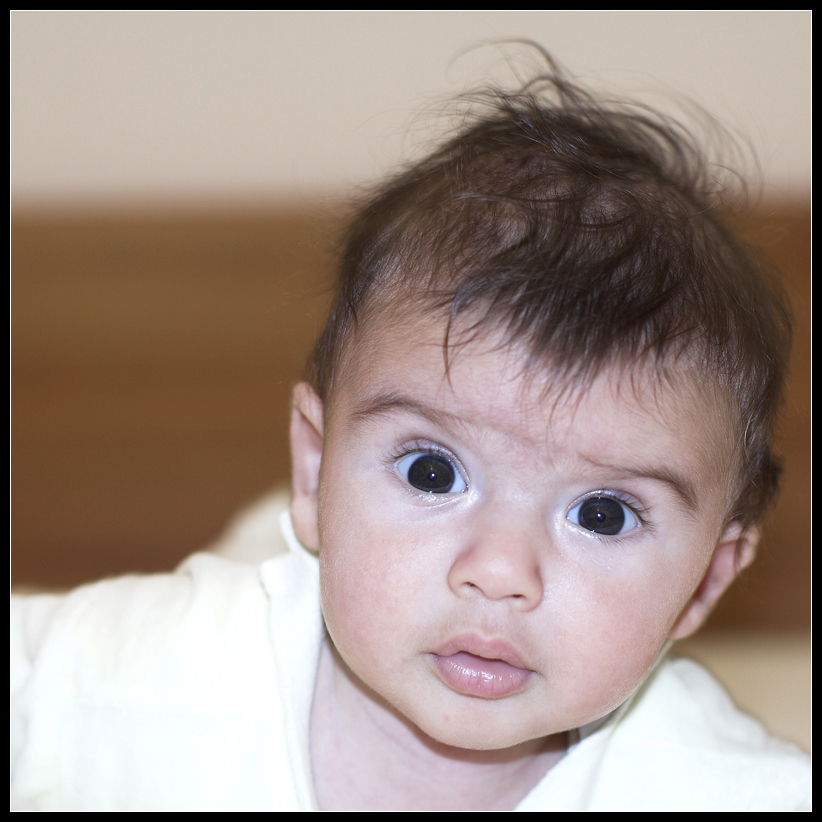 La foto al piccolino secondo me , essendo molto piccolo si trova quasi stranito davanti all'obiettivo con un'espressione di curiosità e meraviglia che però non è dovuta tanto all'oggetto in se, ma quanto piuttosto al fatto che è lui che ha conosciuto poco, spero di aver dato un'idea chiara di quello che intendo =P