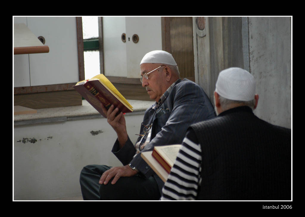 la lettuar del Corano nel silenzio della preghiera _ moeschea di Ortakoy _ Istanbul 2006