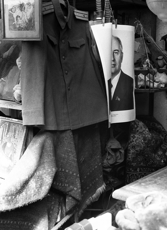 In vendita abbigliamento ed oggetti dell'Armata Rossa ed anche le fotografie del grande rivoluzionario che ha radicalmente cambiato la Storia russa...