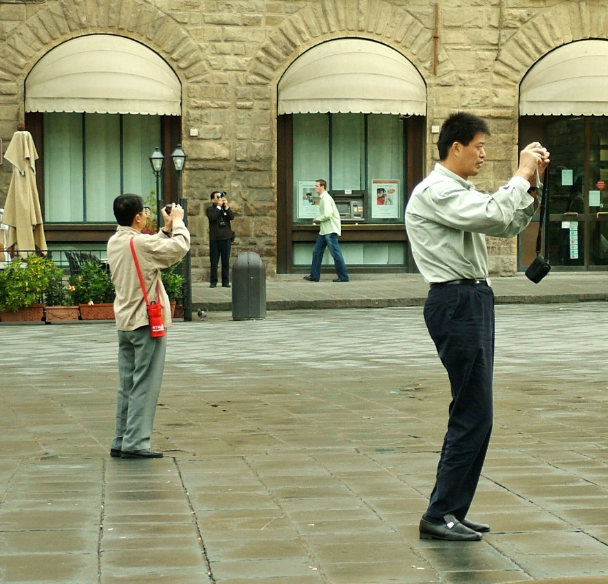 hai colto un momento particolarissimo: eccellente il fatto che ogni fotografo segua direzioni diverse, non mi disturba il quarto uomo che rende ancor più vero il tuo scatto...