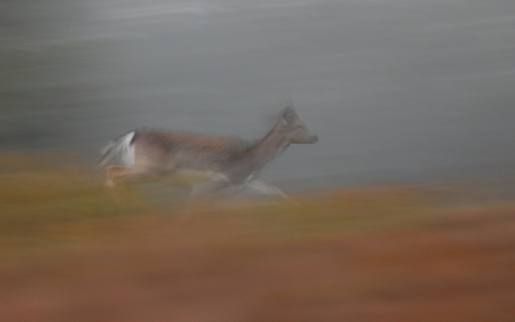 giovane daino in corsa nella nebbia serale. Colori e luci naturali: in basso c'era una distesa di felci secche ed alle spalle del giovane daino un fitto banco di nebbia. _________________ http://luigipiccirillo.com/ |