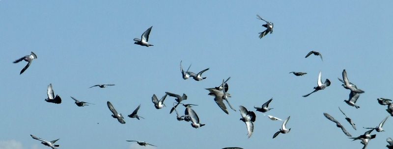 diciamo che in quell'area dove ho scattato, questo falco ha gia fatto stragi di piccioni e usa sempre la stessa tecnica, in pratica si posa su una zona favorevole in altezza di circa 50 mt rispetto ai piccioni che sanno della sua presenza, il falco per farli involare attira verso di se l'attenzione dei poveri piccioni agitando le ali senza involare fino a che non si alzano i piccioni ed e' qui che scatta dal suo posatoio picchiando nel mucchio nel tentativo di ferrarne uno.