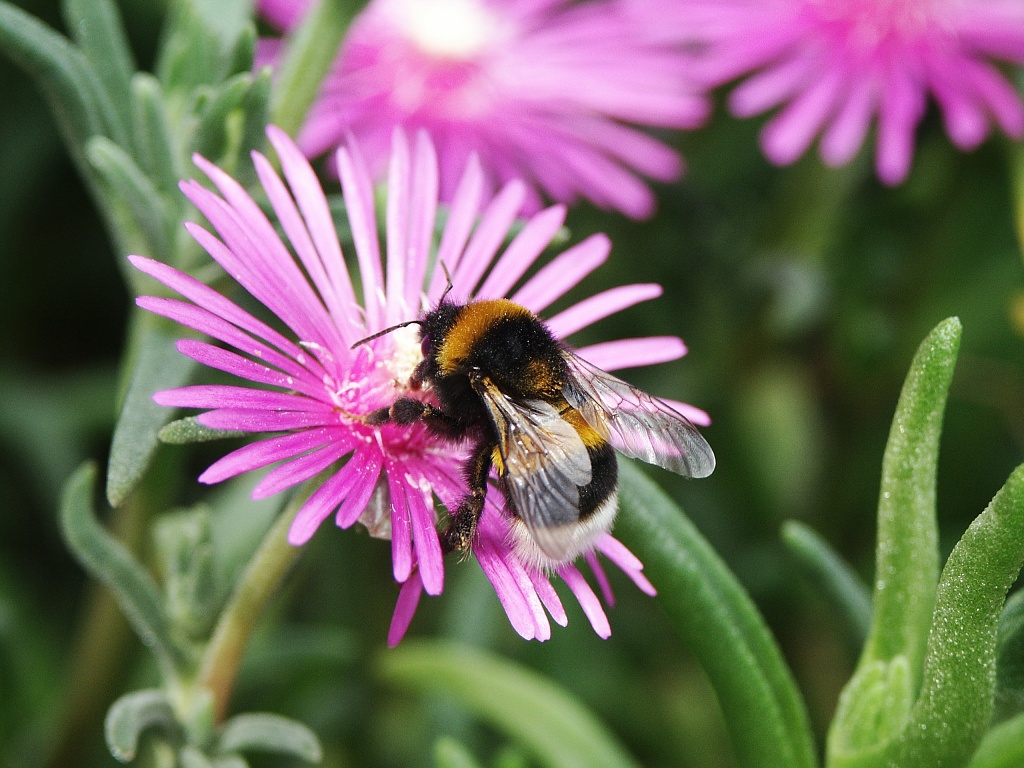 Riconosco anch'io che ci sia un pò troppa confusione, però non mi era possibile avvicinarmi di più e l'ape volava in un'aiuola con decine di fiori ravvicinati