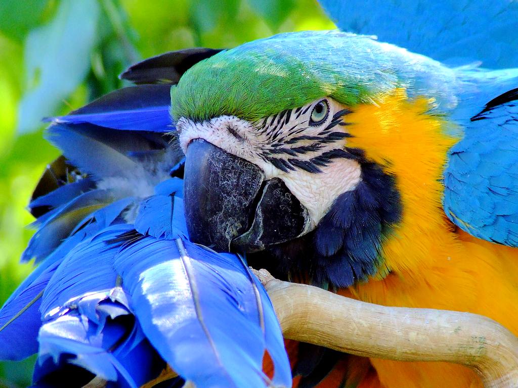 Bello il taglio ravvicinato e la scelta dell'attimo in cui pulendosi l'ala mostra quelle stupende piume azzurre.
