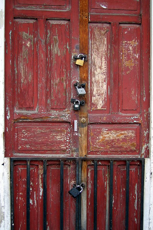 | Non mi convince del tutto il taglio. Sopratutto in alto non mi piace com'e' tagliata la porta, avrei preferito vedere anche un po' di muro attorno oppure una vista piu' stretta sui lucchetti. Pero' in entrambi i casi forse non sarebbe risultata ben ambientata... boh... |