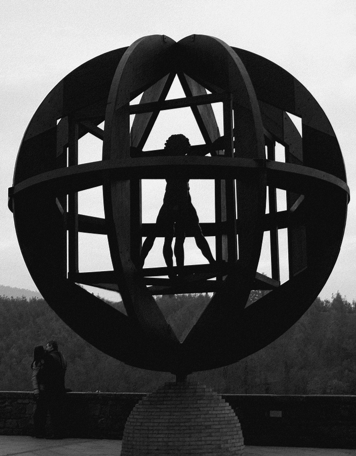 Come già detto troppo scura e forse poco adatta alla sezione architettura, certamente starebbe meglio in street: infatti, dal punto di vista architettonico, la foto è piuttosto approssimativa (il simpatico omino di leonardo poteva essere reso decisamente meglio), mantre è buono il momento colto, anche se a causa della "scurezza" (ma è italiano?? ) la coppia si perde un po'.