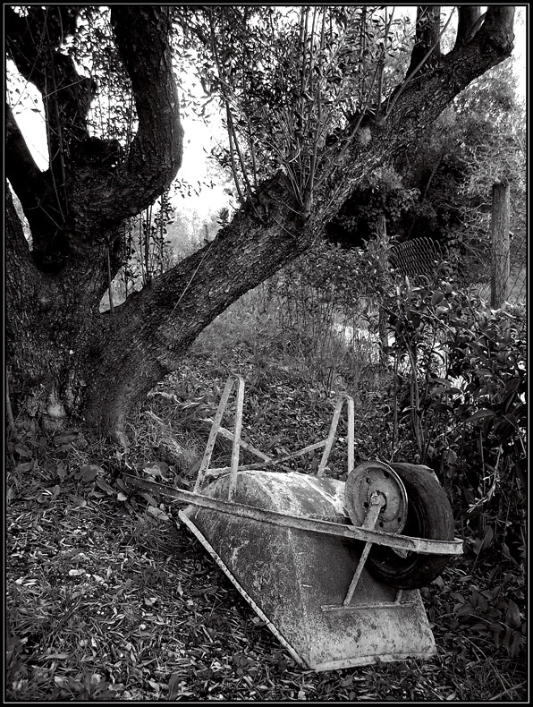 mica male.... ho guardato le altre tue foto e mi sembra uno stile nuovo. il bianco nero è efficace, da provare qualche ritocco ai livelli sulla ex-carriola. Il contrasto forte può starci, anche se in genere non lo amo molto, ma, secondo me, non sull'albero dietro, perche toglie profondità. se rifili un filino a dx, per ridurre il pezzetto di cielo in alto, non sarebbe male.