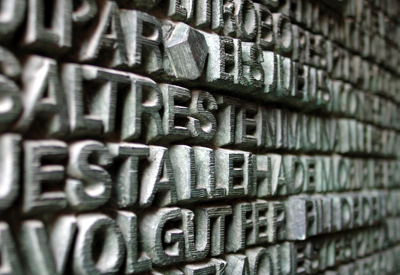 Punto di vista e profondità di campo esaltano ancor di più il rilievo delle lettere.