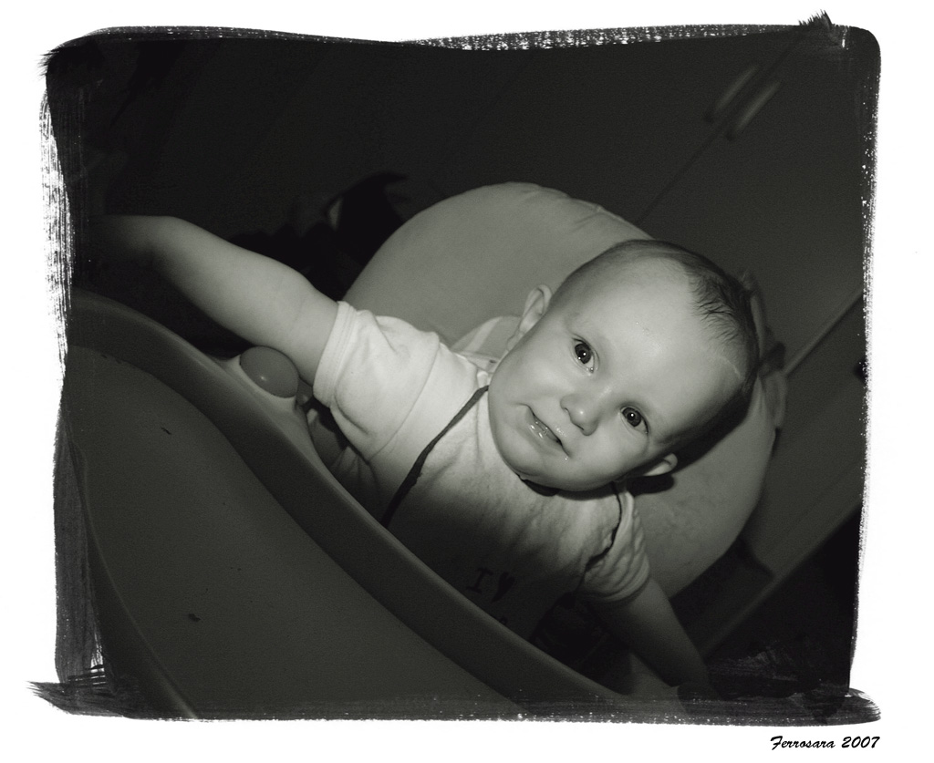 Nel complesso dà una sensazione calda e piacevole..non è l'espressione più felice ma alla fine è un'attimo spontaneo..la tonalità seppia è gradevole per il tipo di foto!a mio avviso, e comunque sono gusti, la preferivo un pò più contrastata sul soggetto..ma sono gusti!